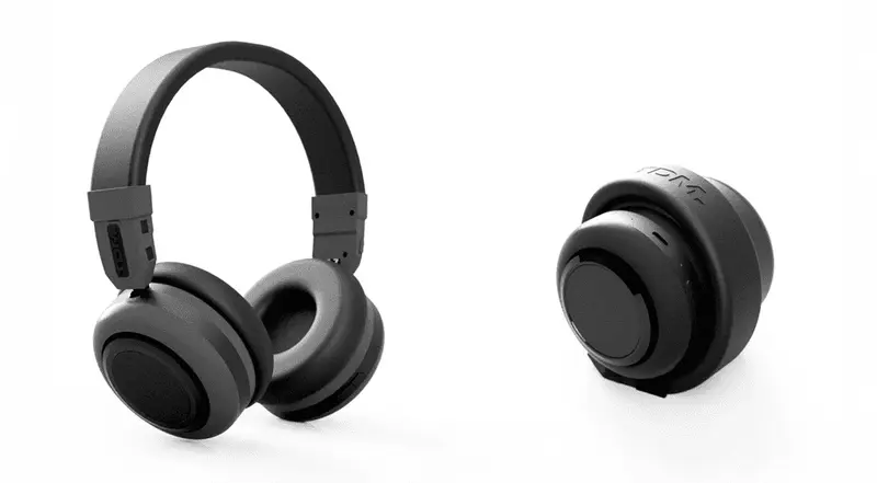 TDM introduced the Neo headphones, which twist into a super compact Bluetooth speaker. The innovative modular design combines four 40mm drivers, dual amplifiers, and a removable battery lasting 200 hours in headphone mode or 10 hours as a speaker.