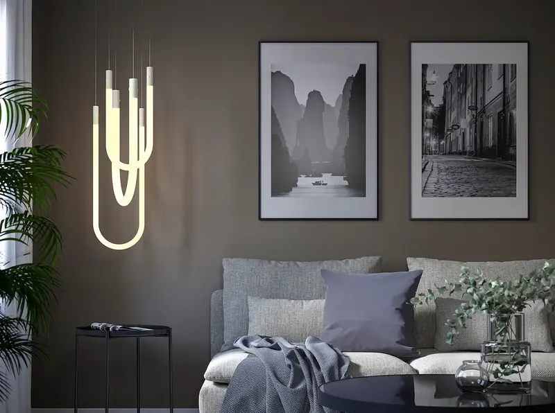 Varmblixt Smart Pendant Light – The smart Varmblixt pendant light focuses on smoothly transitioning white light. Controlled via the included remote or integrated into a Matter-compatible smart home setup, this pendant light complements the rest of IKEA’s new smart offerings.