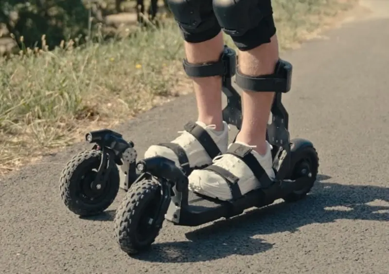 Skwheel introduced the Peak and Peak S, billed as the world’s first electric skis. The standard Peak is designed for pavement and urban riding, reaching speeds of up to 20 mph, while the Peak S targets all-terrain use with top speeds just under 40 mph. Both models use a handheld remote for speed and braking control and can be clipped together into a compact carrying case. Preorders are open, with discounted pricing starting at $1,160 for Peak and $1,746 for Peak S (current pricing is only for preorders).
